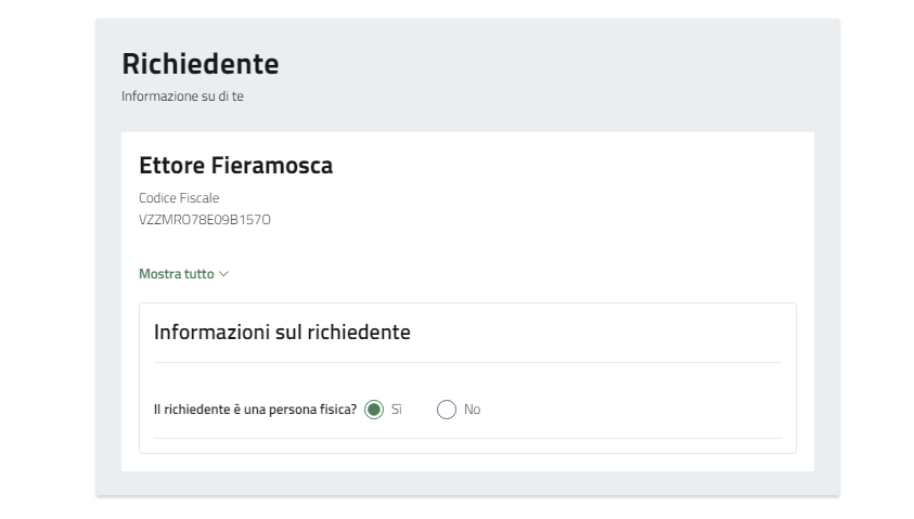 Indicare per conto di chi o cosa si sta presentando l'istanza.