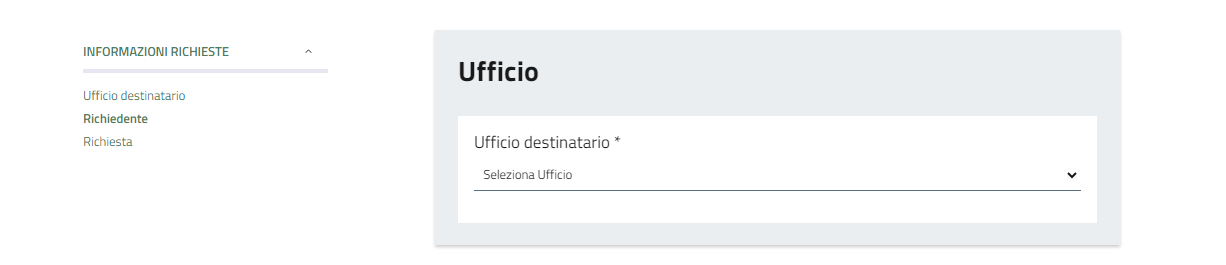 Per prima cosa selezionare dal menù a tendina l'ufficio destinatario della richiesta.